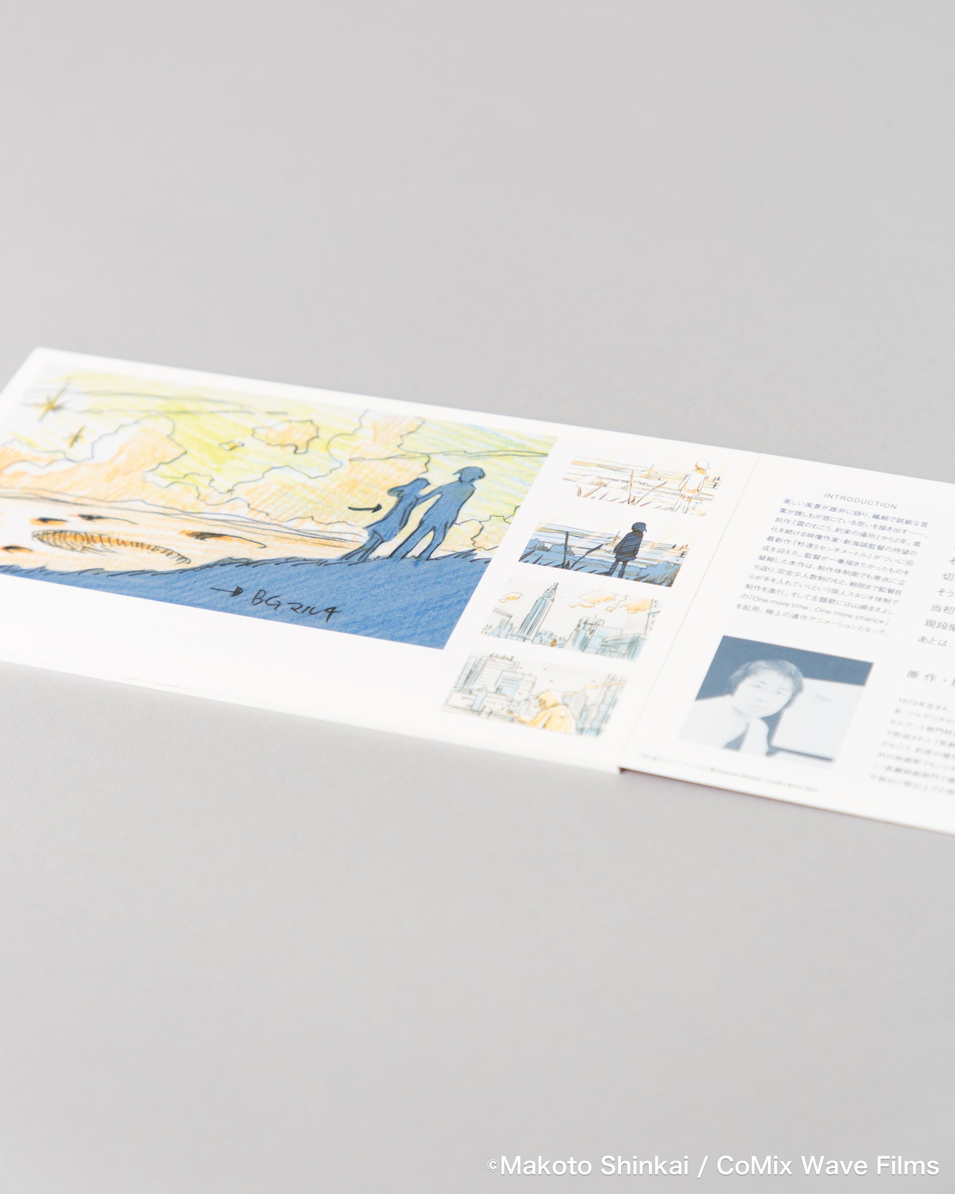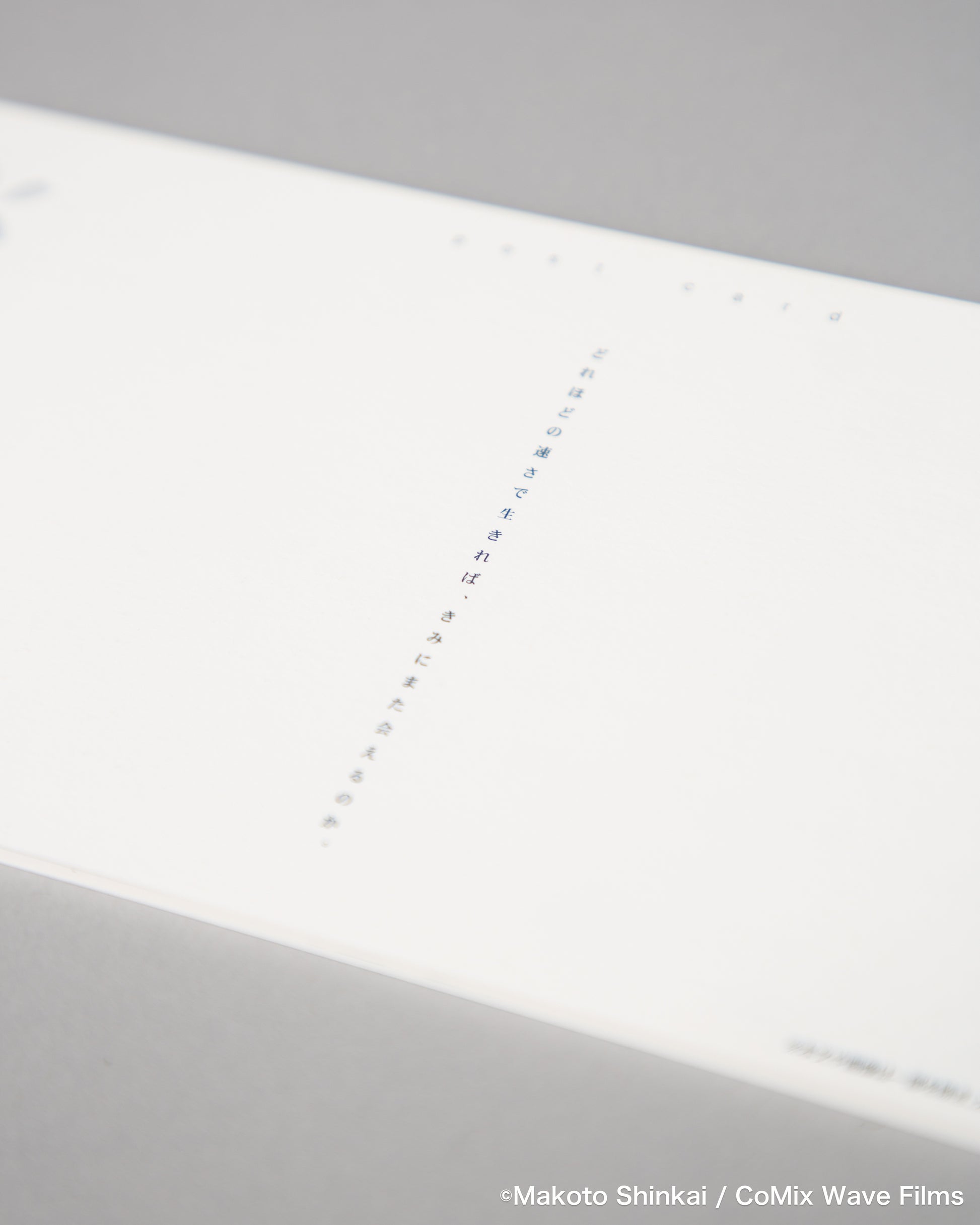 まるで明里と貴樹の文通を思わせるような、封筒の中に収められた美しいカード型パンフレット。新海監督のインタビューをはじめ、キャストやスタッフのコメント、「桜花抄」「コスモナウト」「秒速5センチメートル」それぞれのプロダクションノートなど、当時の貴重な内容が満載です。また1枚ずつ取り外し、ビジュアルカードとして部屋に飾ったり、ポストカードとしても使えるような仕様になっています。