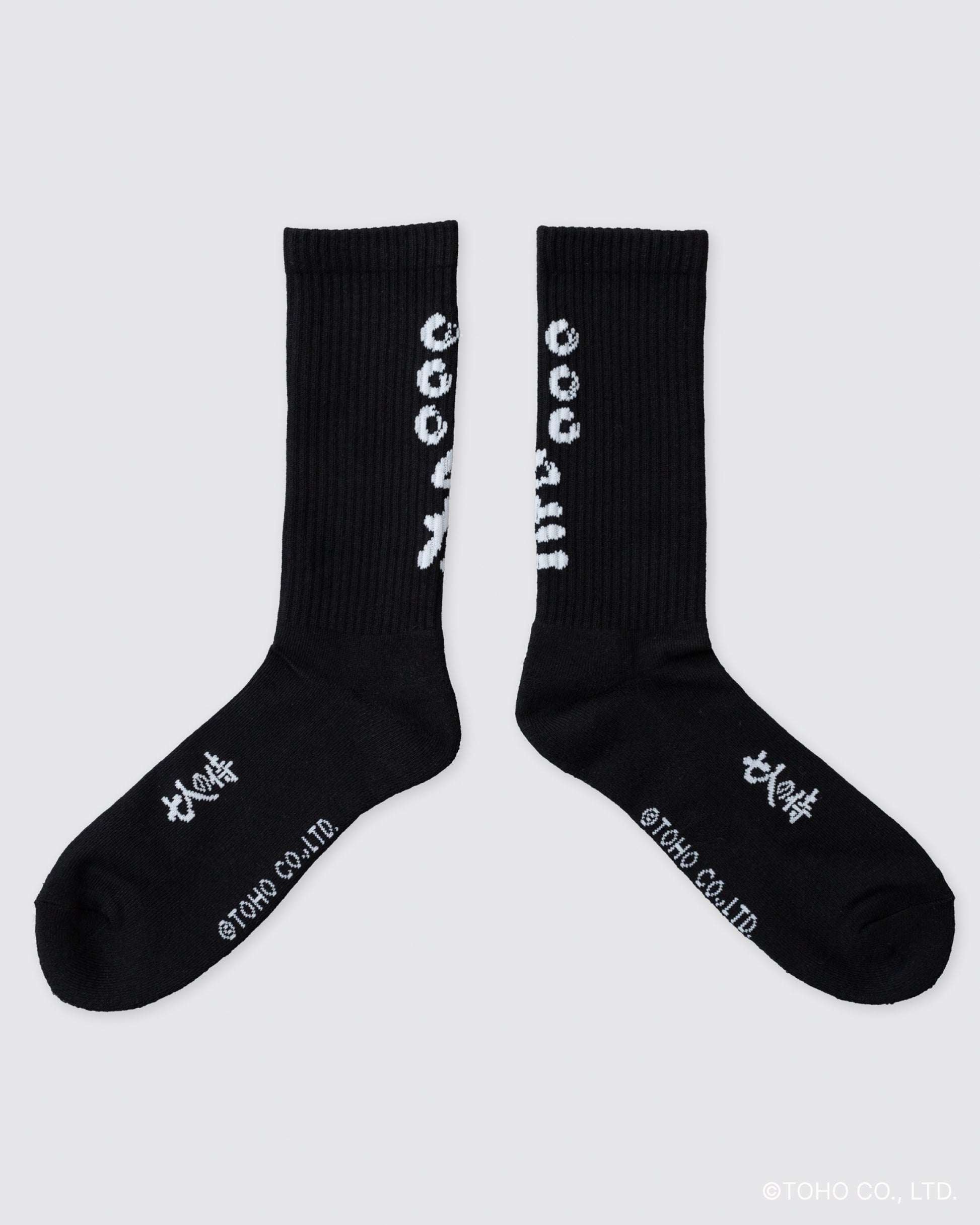 侍と農民が共に戦う結束を掲げた“あの旗印”をモチーフにしたソックス。 6つの円が「6人の侍」を、三角形が「菊千代」を、そして「た」の文字が「農民」を表しています。模様はすべてジャガード織を採用し織り方で柄を表現しています。通常の生地よりも厚みがあり高級感だけでなく、立体感がでる仕上がりの一足に。