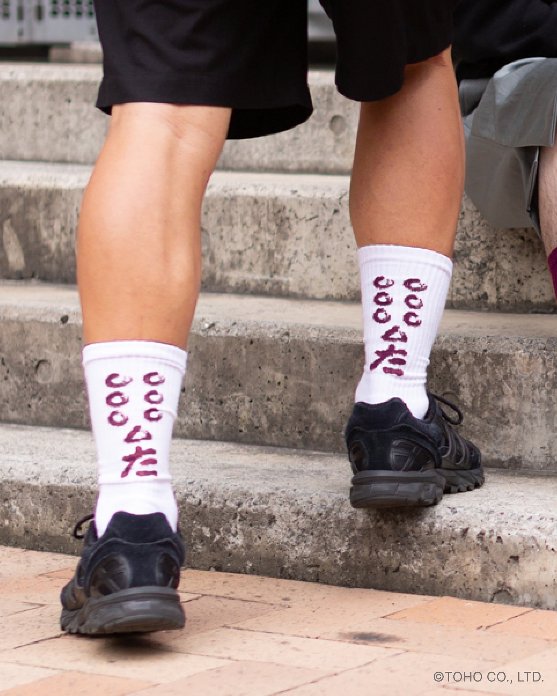 ポスターT、菊千代Tは黒地に白文字で作品タイトルを配したステッカー、ソックスには旗モチーフのステッカーがセットとなります。
