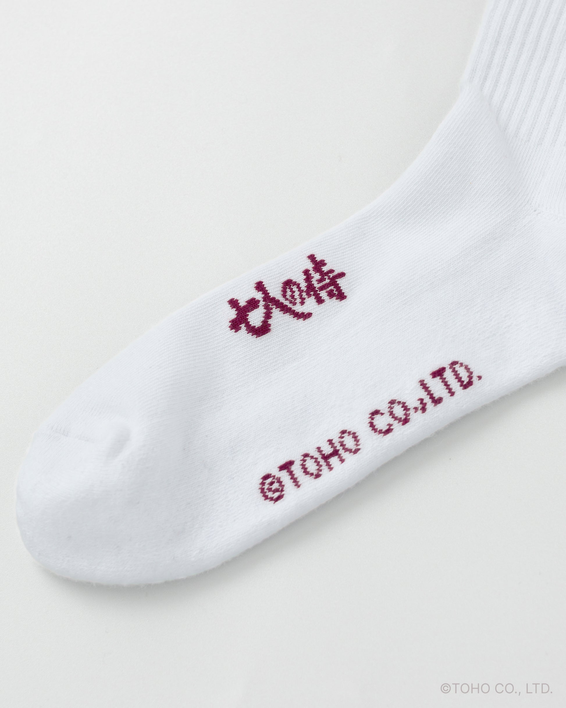 侍と農民が共に戦う結束を掲げた“あの旗印”をモチーフにしたソックス。 6つの円が「6人の侍」を、三角形が「菊千代」を、そして「た」の文字が「農民」を表しています。模様はすべてジャガード織を採用し織り方で柄を表現しています。通常の生地よりも厚みがあり高級感だけでなく、立体感がでる仕上がりの一足に。